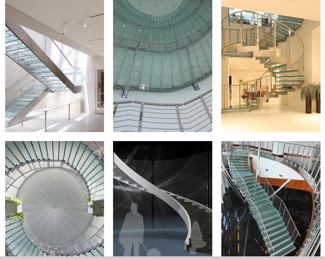 The steps, as well as the parapets and balustrades, are made of laminated tempered glass.