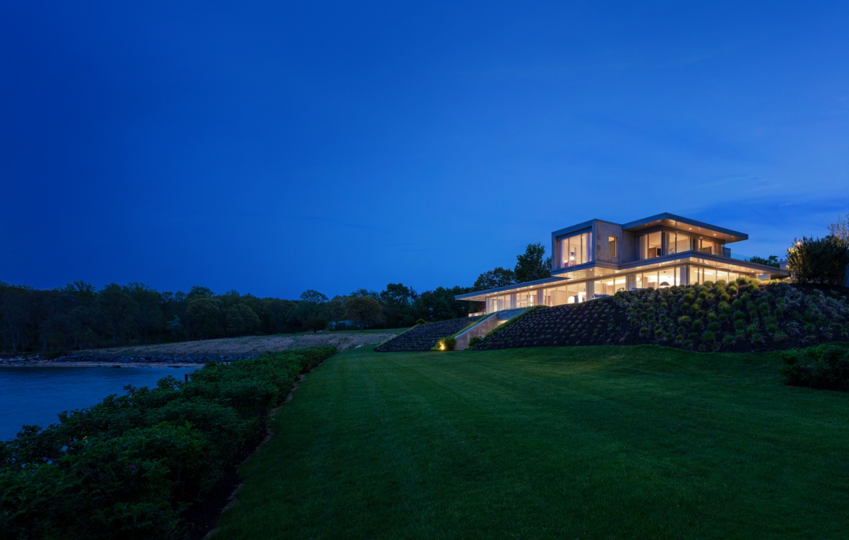 Entre as ondulações verdes das colinas de Long Island emergem elegantes geometrias em vidro, betão e pedra. Trata-se da moradia Wave’s End, uma aposta contemporânea inserida numa paisagem natural que permanece intocada pelo tempo.