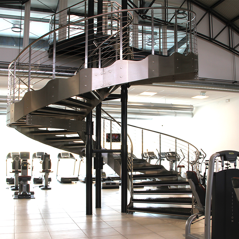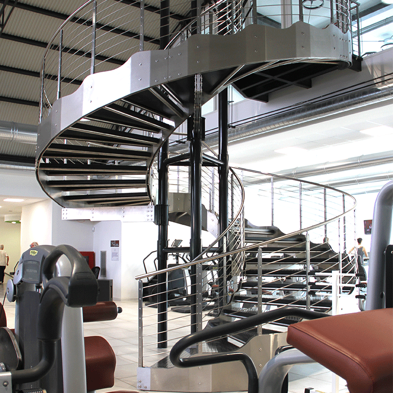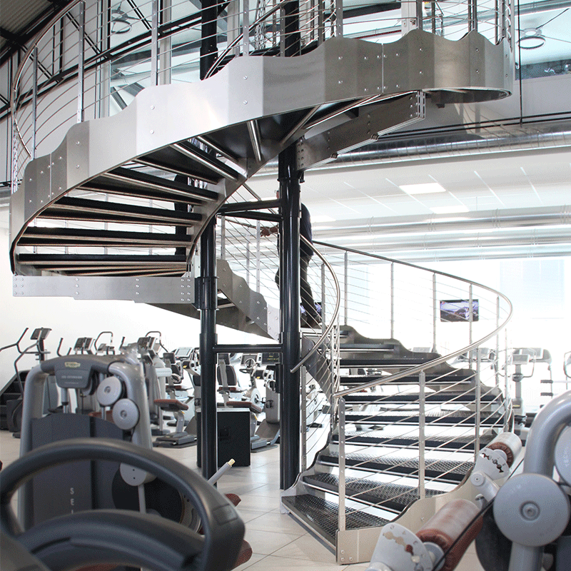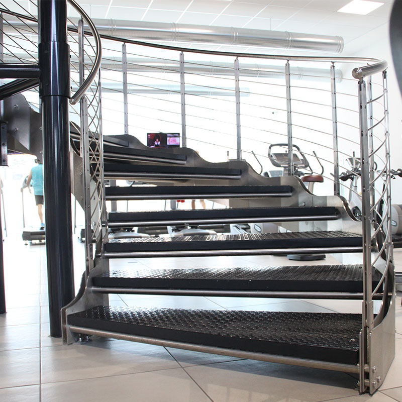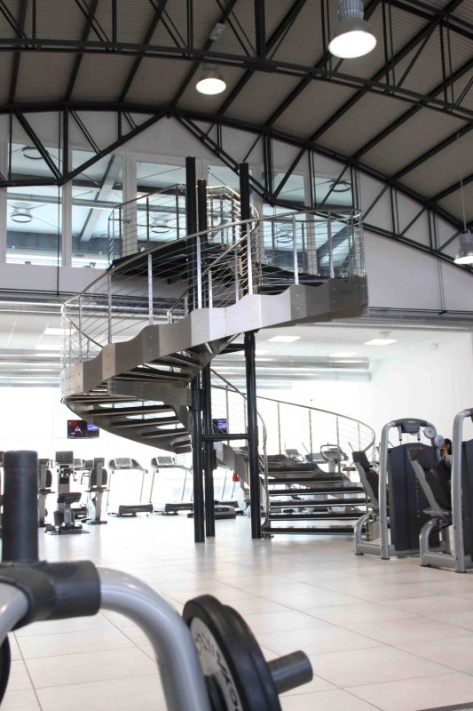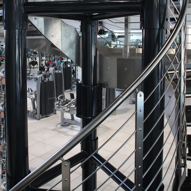 This custom-designed helical staircase was developed to connect the main fitness area with a dedicated spinning room, with meticulous attention to detail in order to meet both client requirements and user expectations.
