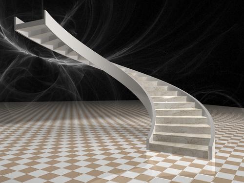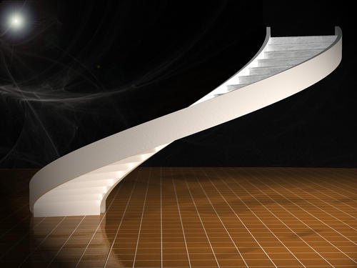 Scala in cemento di grande diametro. Scala semicircolare ad elementi componibili prefabbricati con le caratteristiche comuni, comprendenti in un’unica soluzione: alzata inclinata, pedata, parti laterali interne, esterne, chiuse da fascione parabordo realizzata con gradino di lunghezza interna di metri 1,00 e metri 1,20 con sottogrado a cassettoni, raffinata, unica nel suo genere. Questa scala supera i limiti delle normali scale elicoidali. Forniscono la comodità di salita di una scala retta e si avvitano come scale elicoidali.