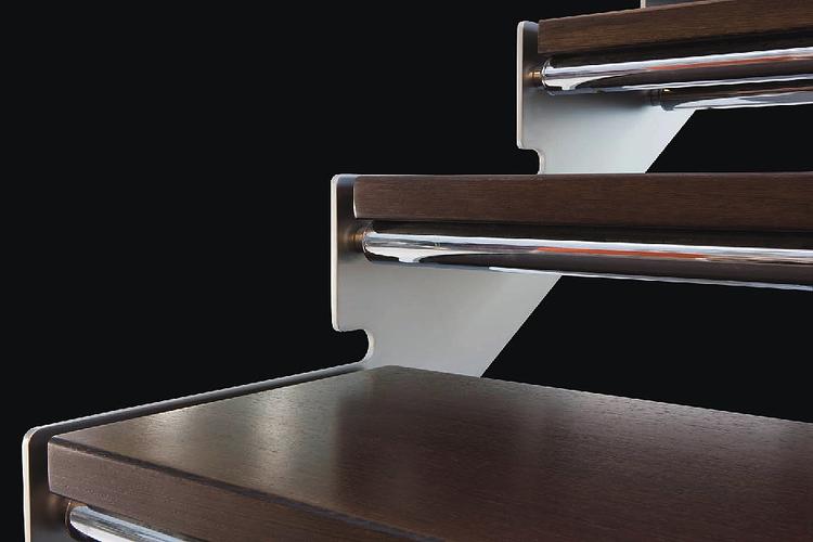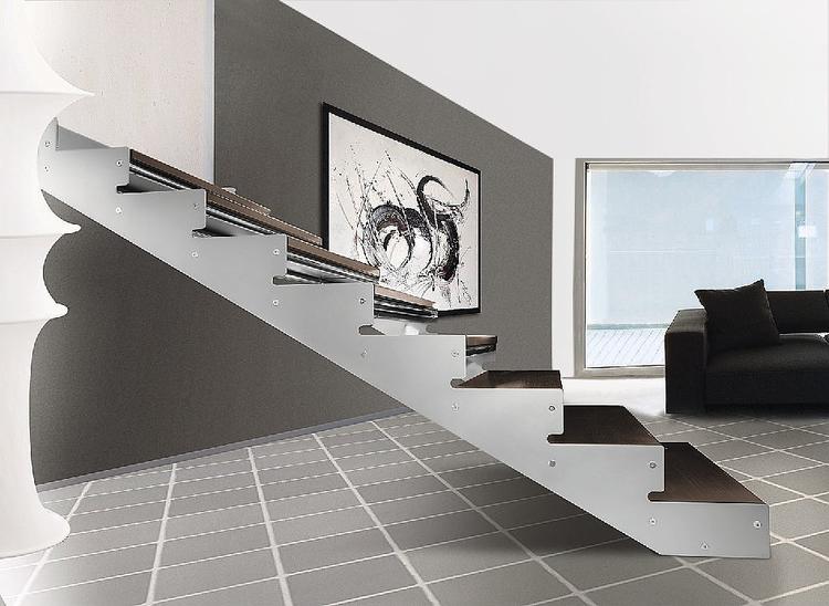 Questo tipo di struttura è l’ideale per realizzare costruzioni robuste ma di linea semplice. A seconda delle dimensioni del vano scala oppure del dislivello, il nostro ufficio tecnico dimensiona le strutture portanti per ottimizzare l’altezza dei piatti, in relazione al carico che devono supportare. Le due strutture portanti principali sono collegate fra loro con tubi di acciaio Edilco System.
